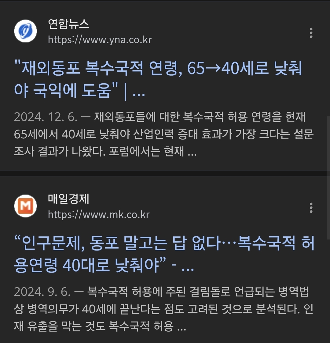 (2) 나라버리고 국적포기했어도 55살되면 복수국적해줘 : 군복무도 안한 검머외를 현행 65세에서 10년을 앞당겨 55세에 복수국적 해달라는 생떼